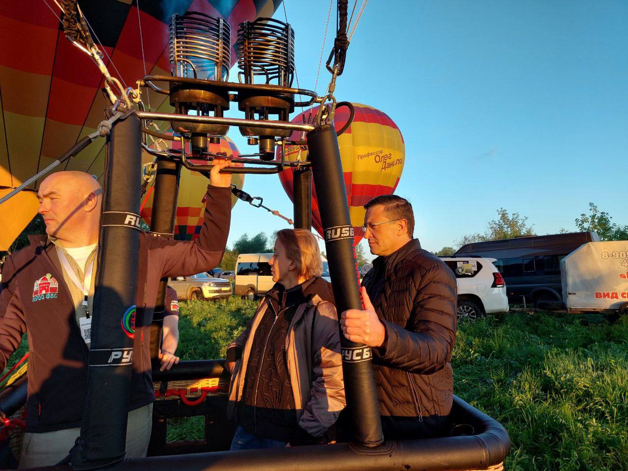 Как рассказал губернатор Глеб Никитин в своем телеграм-канале, участники встретили великолепный рассвет, ведь взлет состоялся примерно в 4:30. Глава региона летел на одном из аэростатов вместе с супругой.