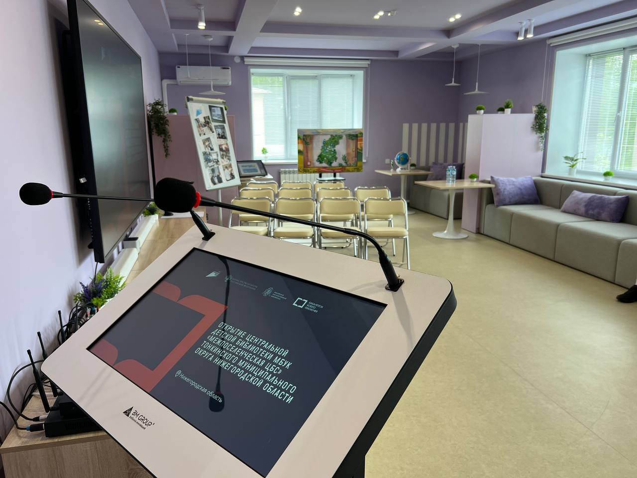 Теперь здесь есть моноблоки, ноутбуки, интерактивные панели, VR-очки, 3D-принтер, графический планшет, акустика и трибуна для презентаций. Для малышей установили интерактивный пол, песочницу, глобусы и наборы для занятий робототехникой.