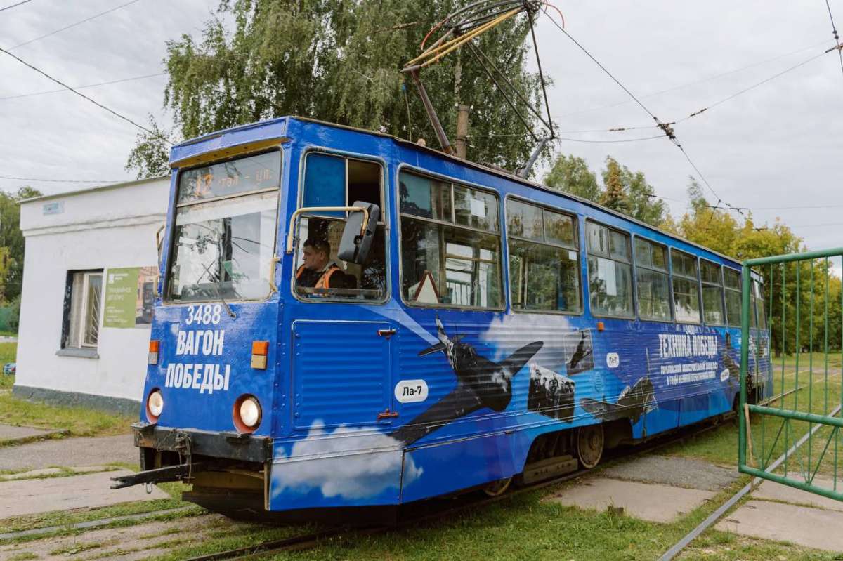 Это уже второй трамвай Победы на маршруте №12. Первый начал курсировать в августе. В его салоне находятся материалы о четырех выдающихся земляках: дважды Герое Советского Союза Арсении Ворожейкине, генерал-лейтенанте авиации Василии Рязанове, торпедном электрике Евгении Никонове и политруке морской пехоты Николае Фильченкове.