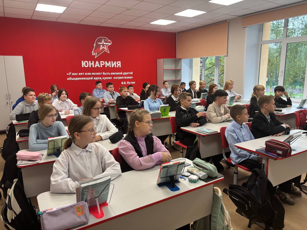 Как рассказала директор школы Ирина Шаланова, ежегодно их ученики показывают высокие результаты в юнармейских соревнованиях. В этом году для них подготовили особый подарок — кабинет предмета "Основы безопасности и защиты Родины" перекрасили в красно-белые цвета, символизирующие движение "Юнармия".