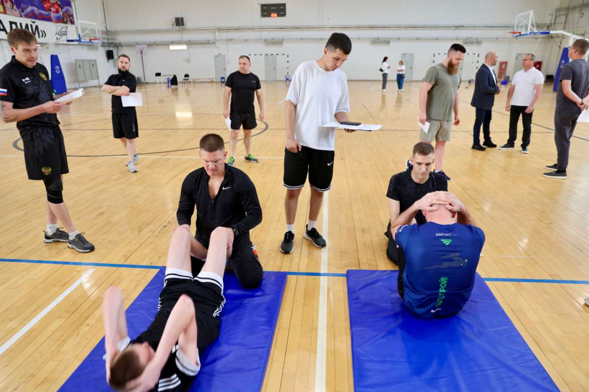 Участники тренировались по пяти дисциплинам: отжимания, поднятие туловища из положения лежа, наклоны вперед, челночный бег 3х10 метров и стрельба из электронного оружия.