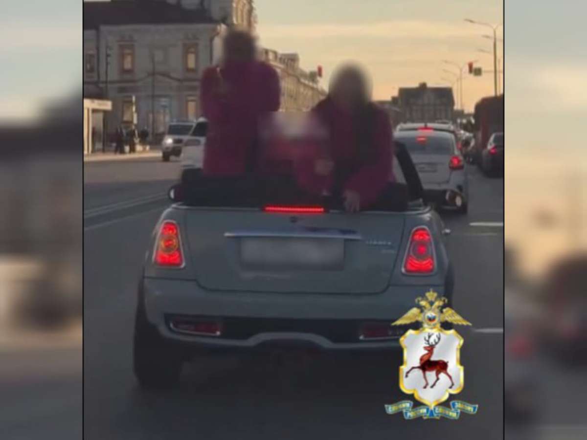 Поводом для разбирательства стало видео, опубликованное в соцсетях. На кадрах видно, как автомобиль движется по Нижневолжской набережной с двумя девушками, стоящими в салоне с открытым верхом и без ремней безопасности.