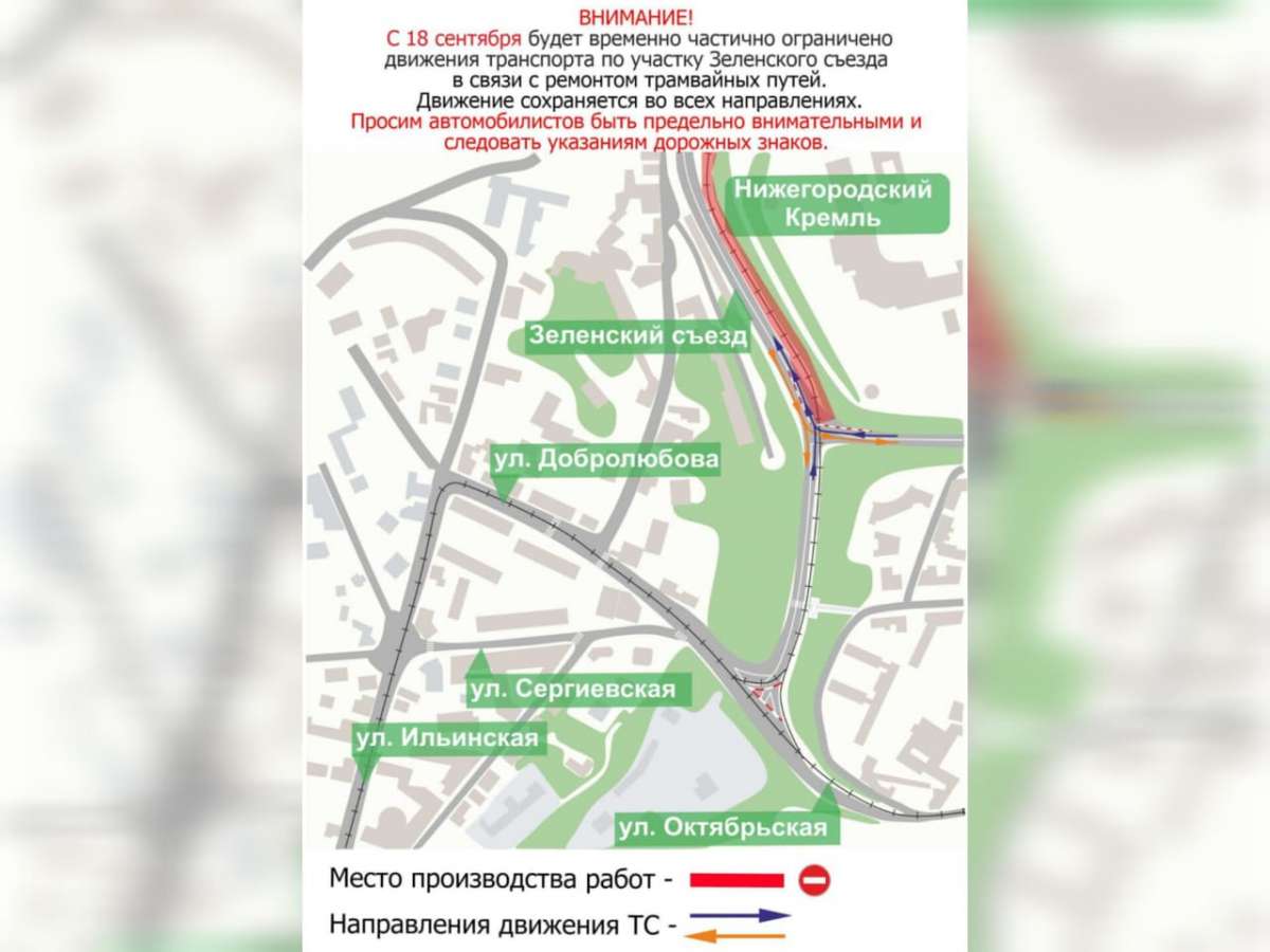 По ее данным, ограничения начнут действовать с 18 сентября и сохранятся до завершения строительных работ. При этом движение по Зеленскому съезду останется доступным во всех направлениях.