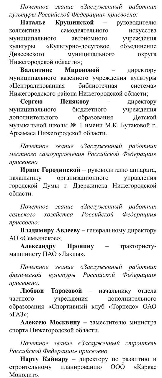 Государственные награды вручены за достижения в сфере культуры и искусства, науки и образования, сельского хозяйства и промышленности, транспортной отрасли, стройиндустрии, спорта, а также представителям государственной и муниципальной службы.