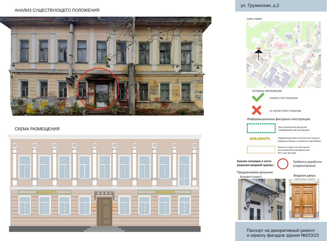 Изменения направлены на создание единой визуальной среды и повышение эстетических характеристик городской улицы. Анализ текущего состояния показал, что многие информационные конструкции на фасадах зданий устарели, размещены хаотично и не соответствуют архитектурному облику улицы. В концепцию включены конструкции, которые не отвечают требованиям.
