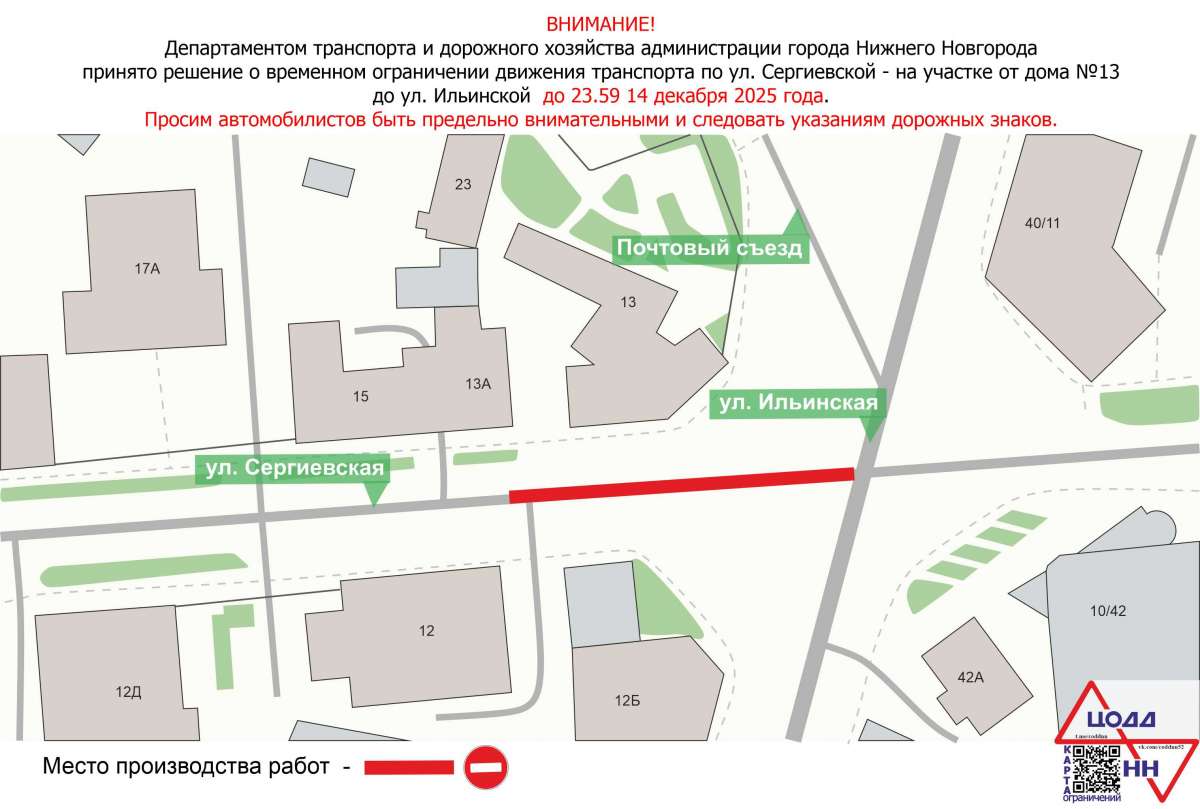 В Нижнем Новгороде на участке улицы Сергиевская временно ограничили движение транспорта. Речь идет об отрезке от дома №13 до пересечения с улицей Ильинской.