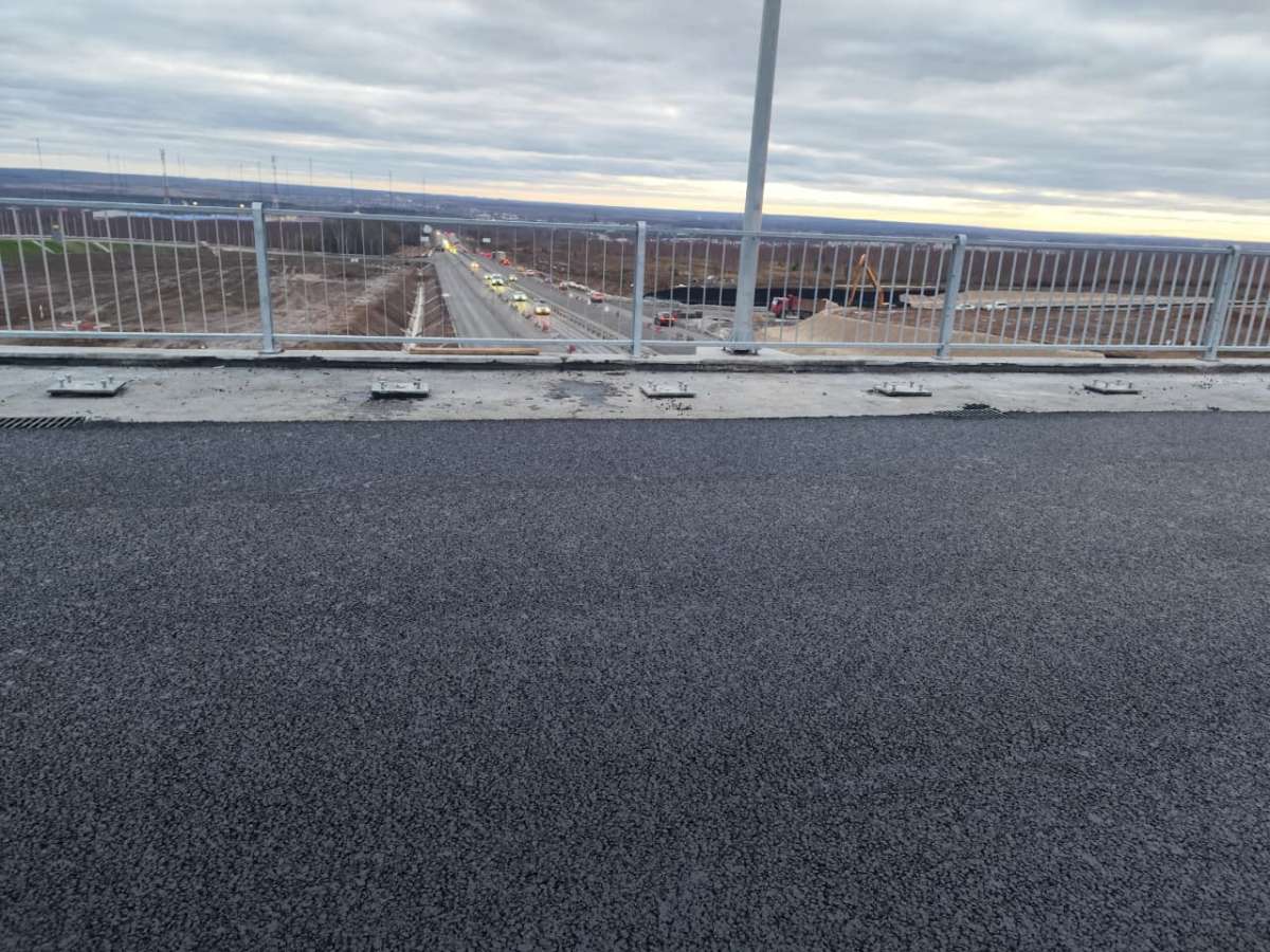 "Путепровод – это ключевой объект будущей развязки, и укладка верхнего слоя – всегда знаковое событие", - подчеркнул руководитель производства по искусственным сооружениям ПК "Автобан" Иван Хламин.