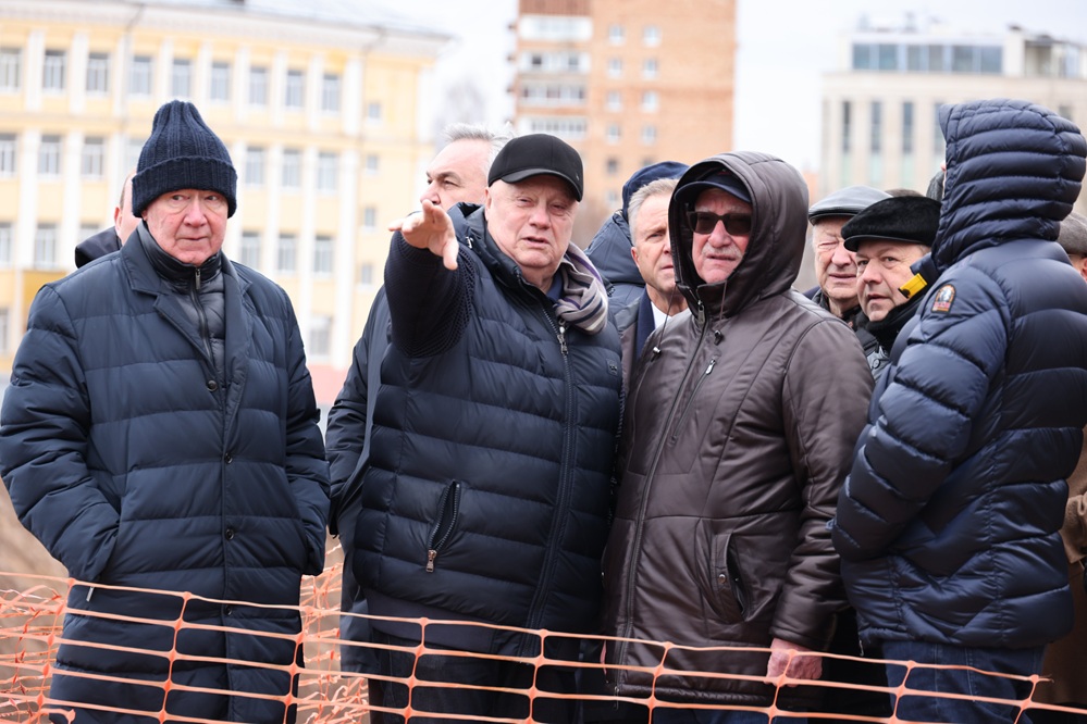 Первой точкой маршрута стало посещение строительного городка в районе дома №1 по Университетскому переулку. С обзорной площадки участники получили возможность оценить масштаб работ и общее состояние территории.