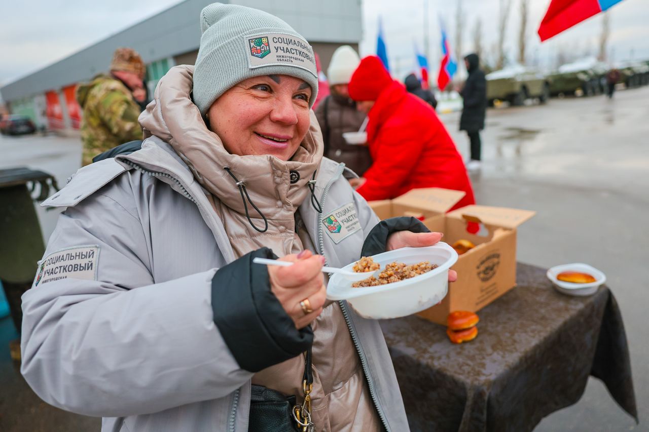 Участники автопробега почтили память павших защитников Отечества минутой молчания. Затем колонна из 30 автомобилей проследовала до парка Победы на набережной Гребного канала. Активисты проекта "Социальный участковый" провели участникам историческую экскурсию, а после угостили солдатской кашей с горячим чаем.