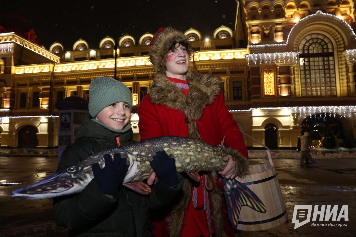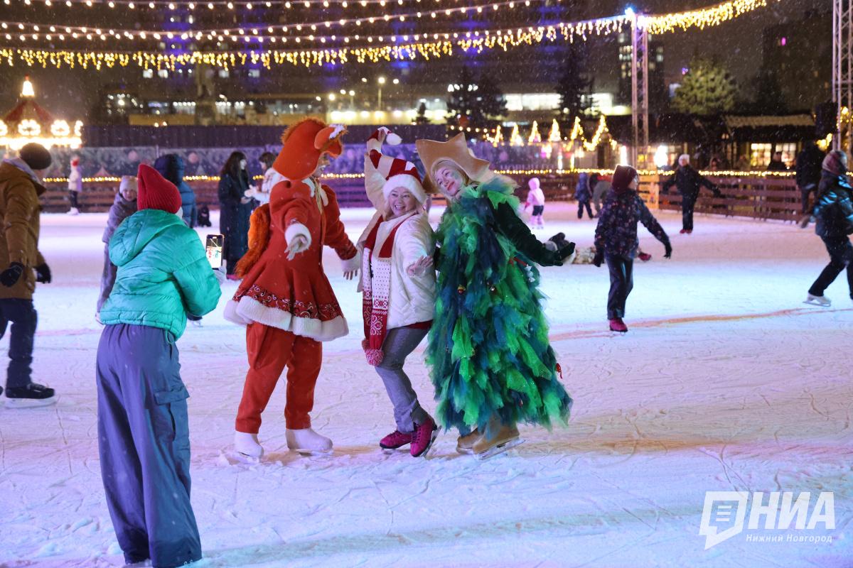 Новогодняя площадка открылась на территории Нижегородской ярмарки. Там работают каток с прокатом коньков, ярмарочный базар, карусель и фотозоны.