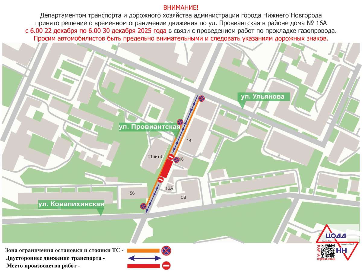 В Нижнем Новгороде временно перекроют движение транспорта на участке улицы Провиантская в районе дома №16А. Об этом сообщили в городском дептрансе.
