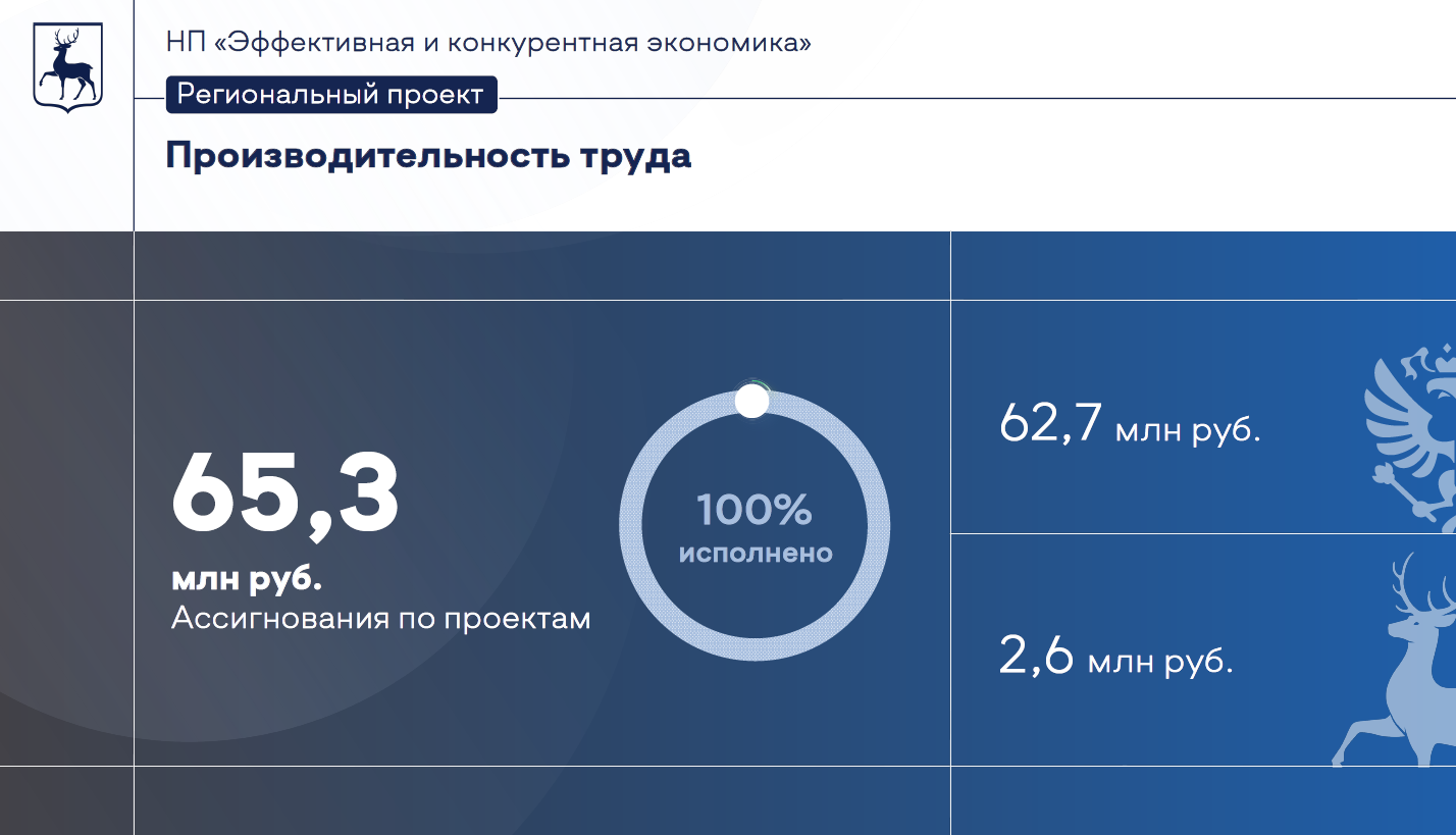 План реализации федерального проекта «Производительность труда» в Нижегородской области перевыполнен на 31%. Итоги реализации нацпроектов были подведены в ходе заседания правительства Нижегородской области 22 декабря.