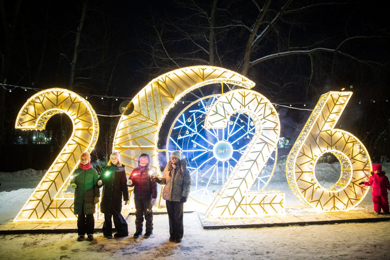 Гигантскую 14-метровую елку в парке «Станкозавод» видно издалека. Тысячи огней на ней зажгли энергетики Эн+. Цифры 2026 высотой 4 метра, сияющие фонари - это самая популярная фотозона в Ленинском районе, притягивающая своим светом детей и взрослых.