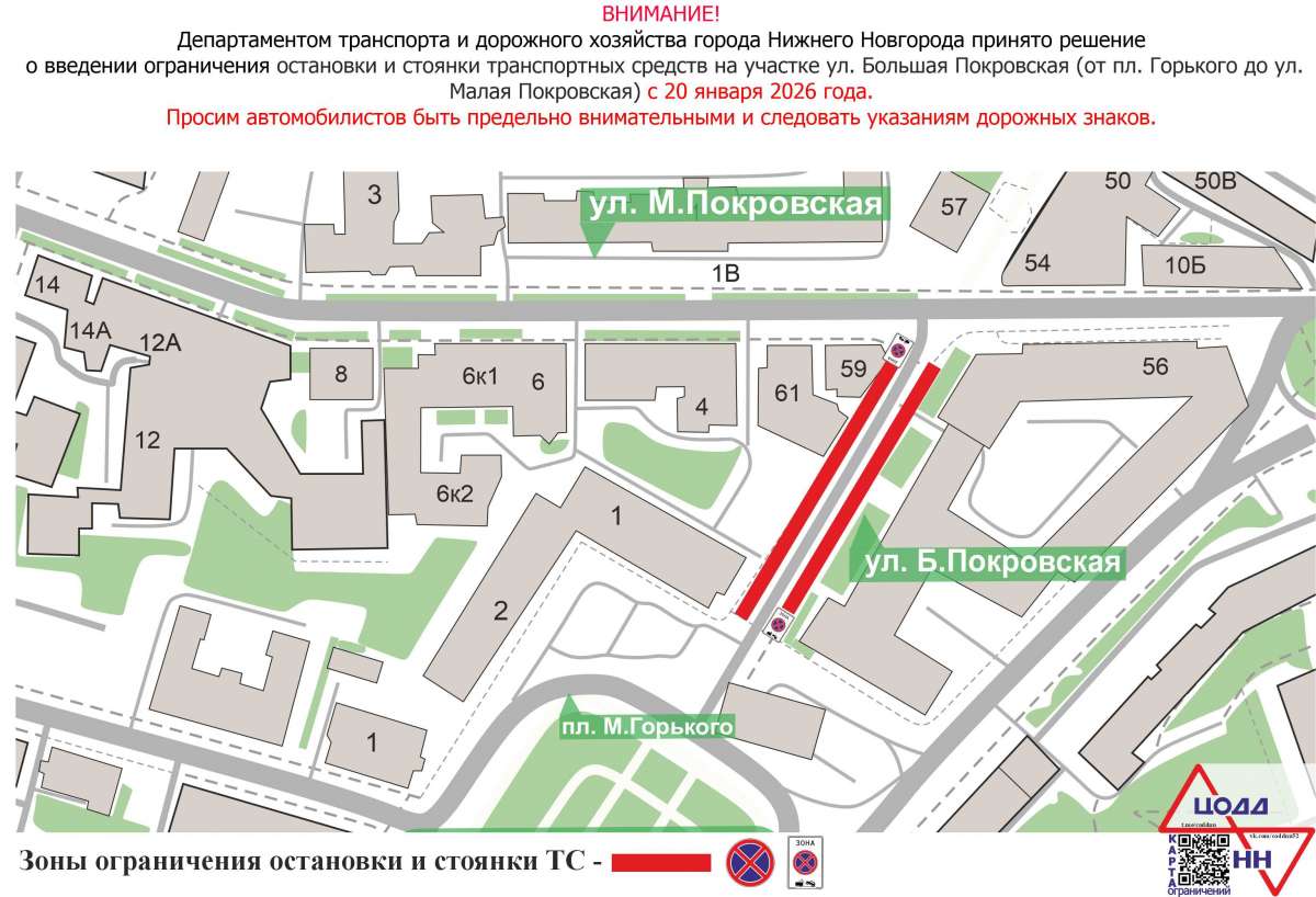 На участке улицы Большой Покровской в Нижнем Новгороде вводятся ограничения на остановку и стоянку автомобилей. Меры начнут действовать с 20 января 2026 года, сообщили в мэрии.