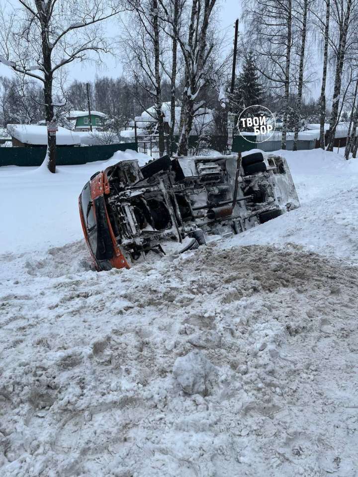 Пассажирский автобус №126 перевернулся возле деревни Сырохватово в Борском округе. Об этом в соцсетях сообщили очевидцы.