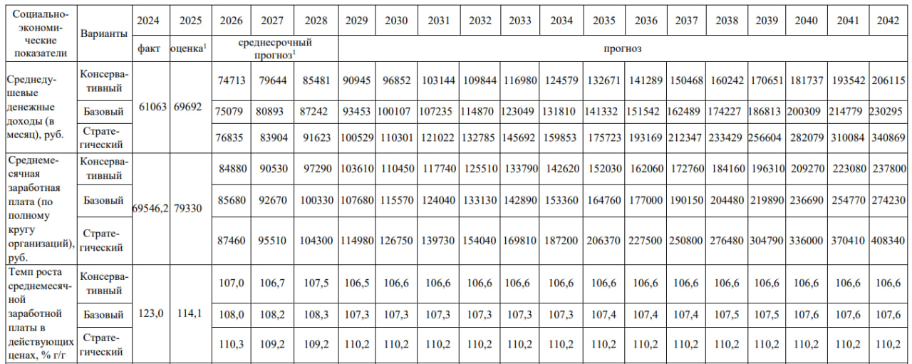В документе представлены три сценария развития: консервативный, базовый и стратегический. Они учитывают как внешнеполитические и экономические риски, включая санкционное давление и глобальные вызовы, так и возможности ускоренного роста за счет инноваций, инвестиций и инфраструктурных преобразований.