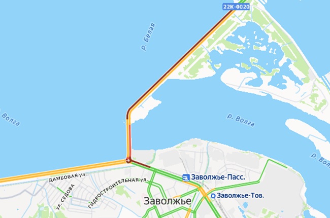 По данным сервиса "Яндекс Карты" на 15:30, затор уже начинается в городе Заволжье.