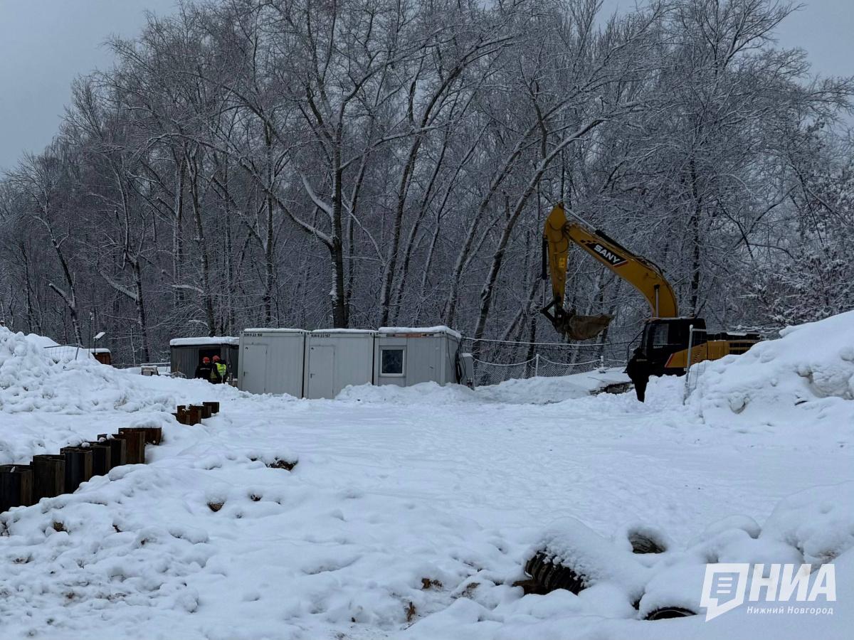 Корреспондент НИА "Нижний Новгород" побывала на месте строительства и увидела, что площадка обнесена забором, на территории стоит техника.