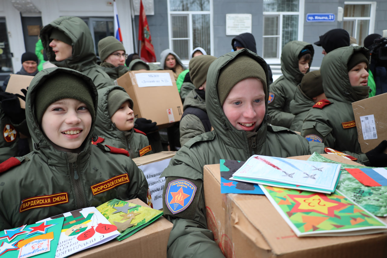 Посылки дополнили письмами и самодельными поздравительными открытками с Днем защитника Отечества от учащихся школ и воспитанников детских садов Автозаводского района Нижнего Новгорода.