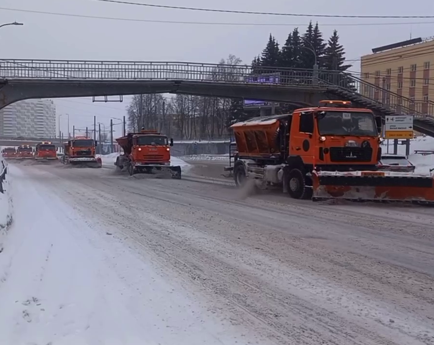 В утренний час пик дорожники сосредоточились на локальном вывозе снега, чтобы не затруднять движение. Днем дороги повторно обработали и промели. Массовый вывоз снега запланирован на вечер и ночь.