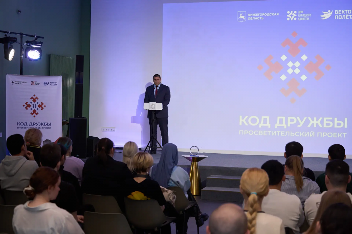 «Код дружбы» стартовал в начале марта с отборочных туров в вузах региона. В финал вышли 29 команд из 12 высших учебных заведений. Завершающий этап открыл заместитель министра внутренней региональной и муниципальной политики Нижегородской области Дмитрий Грачев.