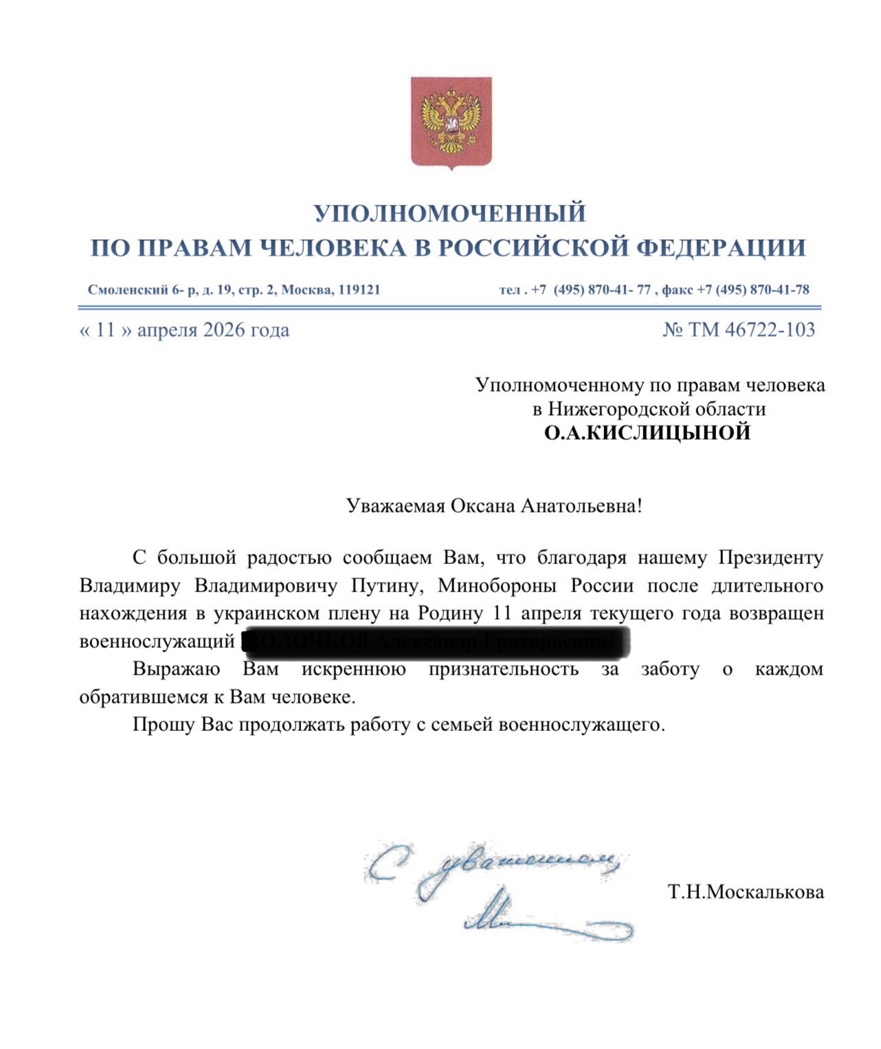Среди освобожденных есть и нижегородец, чьи родственники ранее обращались к региональному омбудсмену за помощью.