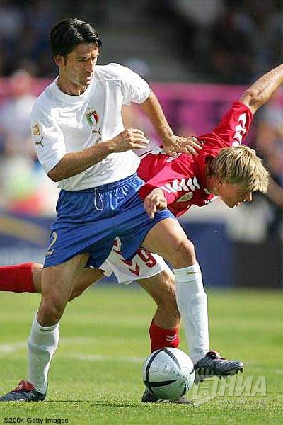 Итальянцы выставили атакующий состав, в котором нашлось место и Вьери, привычно выдвинутому вперед, и Тотти, действовавшему чуть позади Вьери и выдавшему несколько сверхдлинных пасов, в том числе одну чудо-передачу метров на 50 с лишним, и Дель Пьеро с Каморанези, которые прописались на флангах и сыграли острых хавов. Но тренер датчан Мортен Ольсен сделал ставку в обороне на игроков итальянских клубов и не прогадал. Защитник "Милана" Мартин Лаурсен включил из игры Тотти, причем за весь матч сфолил только один раз, зато Тотти под занавес получил предупреждение. А бывший одноклубник Лаурсена Томас Хельвег, ныне защищающий цвета "Интера", не дал развернуться Кристиану Вьери, за что не раз срывал аплодисменты независимой части зрителей на стадионе. Дисквалифицированного Томаса Гравесена заменил Даниэль Йенсен, чей опыт игры на месте опорного полузащитника не самой сильной испанской "Мурсии" оказался как нельзя кстати в борьбе с превосходящими по классу итальянцами.