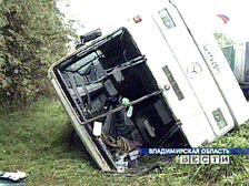 Авария произошла около 4:00 мск во вторник в районе Вышнего Волочка на 253-ем километре автодороги Москва - Санкт-Петербург. Автобус наехал на препятствие и перевернулся.