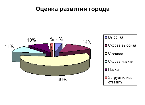 Абсолютное большинство жителей Нижнего Новгорода весьма осторожно оценило развитие города в настоящее время (всего 2,9 по 5-ти балльной шкале). Под развитием подразумевается интегральная совокупность факторов, определяющих качество жизни.