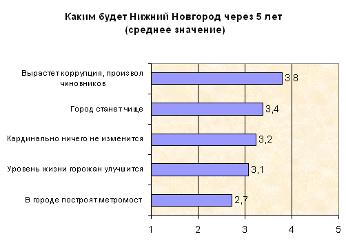 Маркетинговое агентство "Медиа Навигатор" провело опрос нижегородцев в возрасте от 14 до 70 лет. В рамках этого опроса обсуждались проблемы, связанные с жизнью города, бытовыми условиями, а также перспективами развития на ближайшее пятилетие.