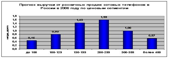 Рынок розничных продаж сотовых телефонов в 2006 году будет, практически, окончательно структурирован и консолидирован. Об этом говорит то обстоятельство, что, по оценке "Евросеть", уже в конце 2005 года у 10 ведущих ритейлеров России доля суммарных розничных продаж достигнет 80%.