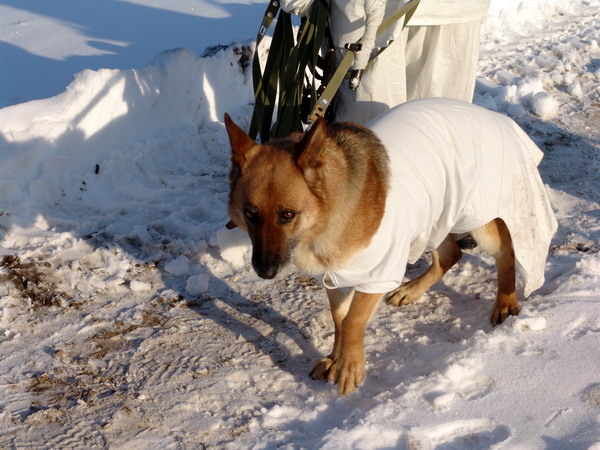 Собака в камуфляже - враг не должен видеть ее на снегу