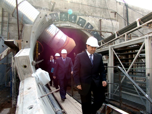 В фоторепортаже приведены фотографии строительства тоннеля метро от метромоста к станции "Горьковская", а также визита на стройку министра транспорта России Игоря Левитина.