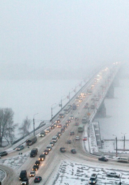 о возможном увеличении числа аварий, вызванных сильным снегопадом. Уже ближе к вечеру 21 декаюря движение на центральных магистралях Нижнего Новгорода