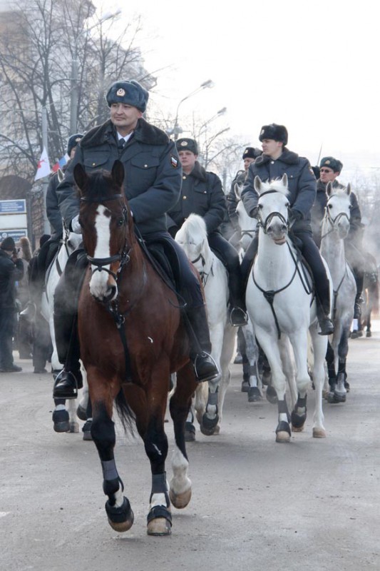 Торжественный развод конной милиции на площади Минина и Пожарского в Нижнем Новгороде