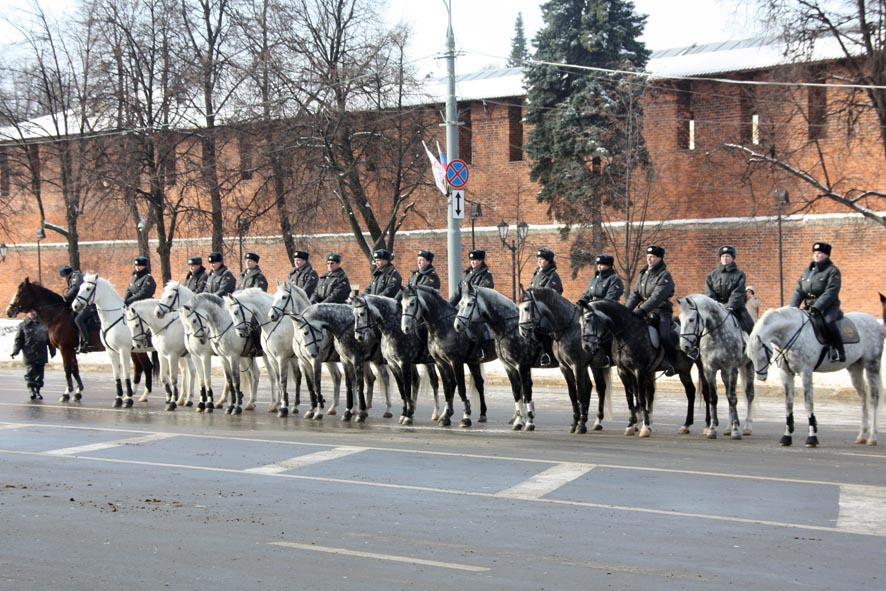 После окончания развода кавалеристы маршем прошли по площади Минина и Пожарского
