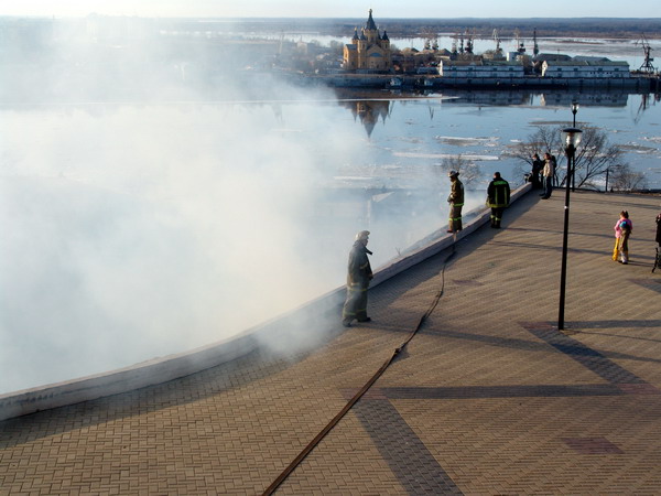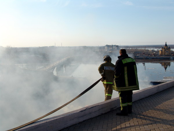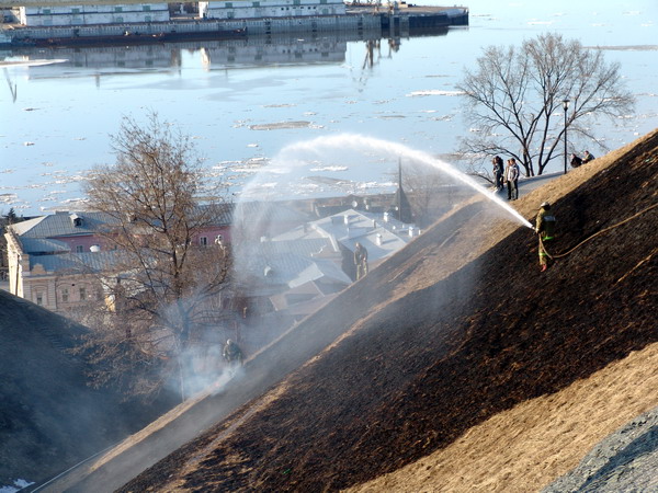Ликвидация возгорания травы на склоне набережной Федоровского в Нижнем Новгороде