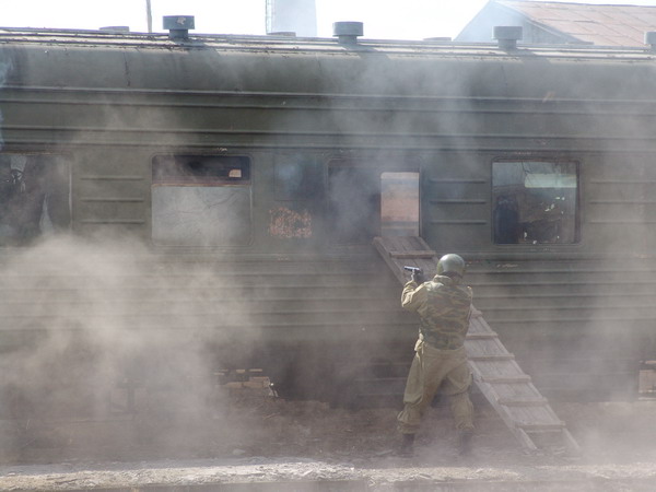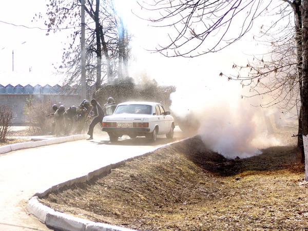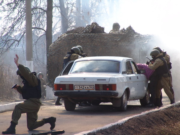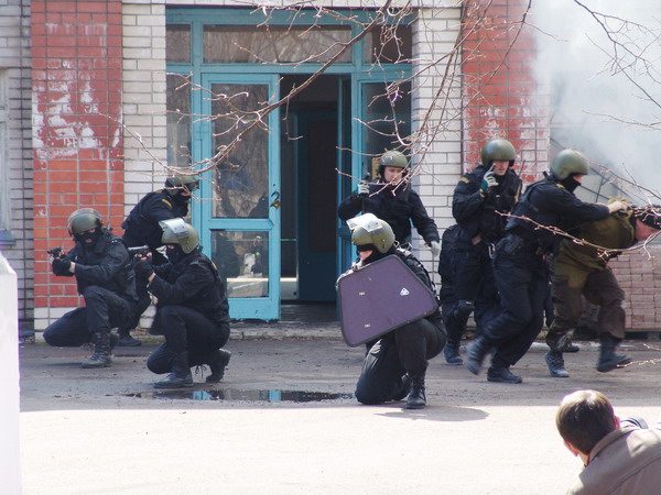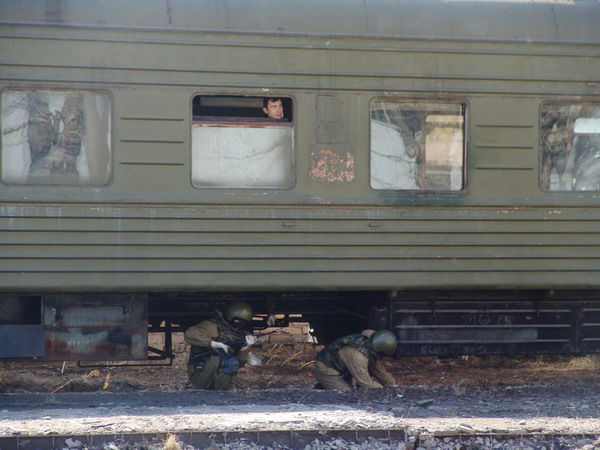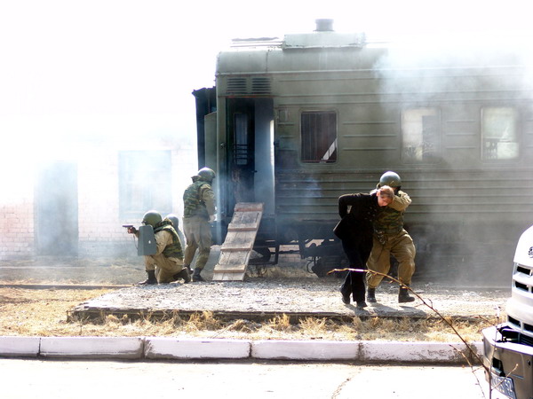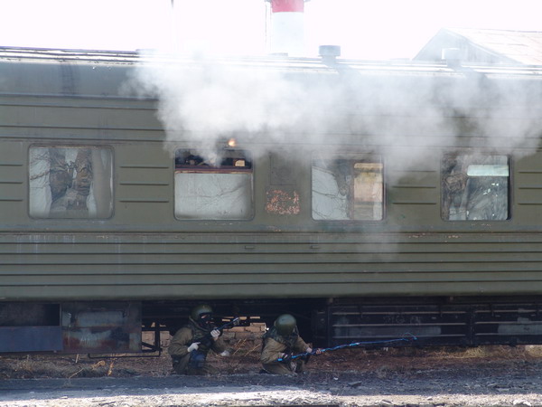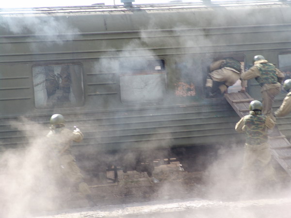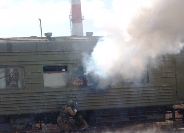 Действия ОМОН по освобождению заложников в вагоне поезда