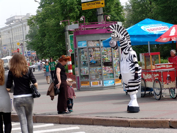 Зебра помогала нижегородцам перейти через дорогу