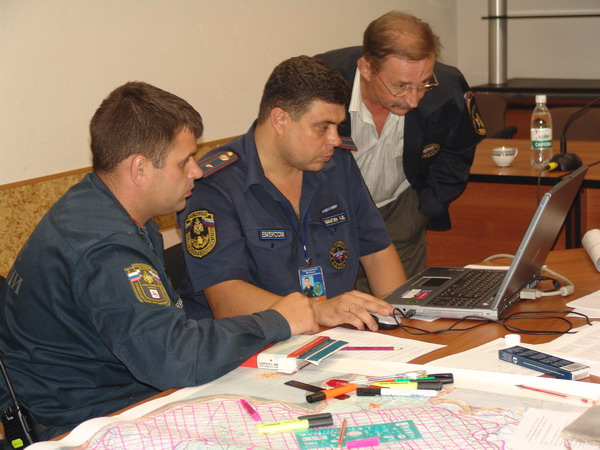 Заседание оперативного штаба по ликвидации лесных пожаров. Спасатели по карте следят за огнем