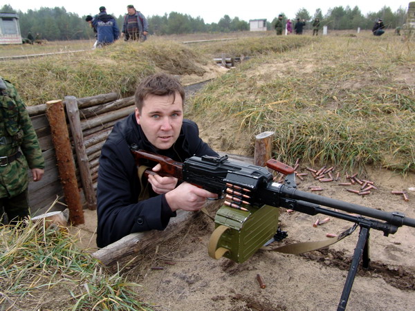 Вадим Лукьянов (т/к Волга) с автоматическим пулеметом Калашникова