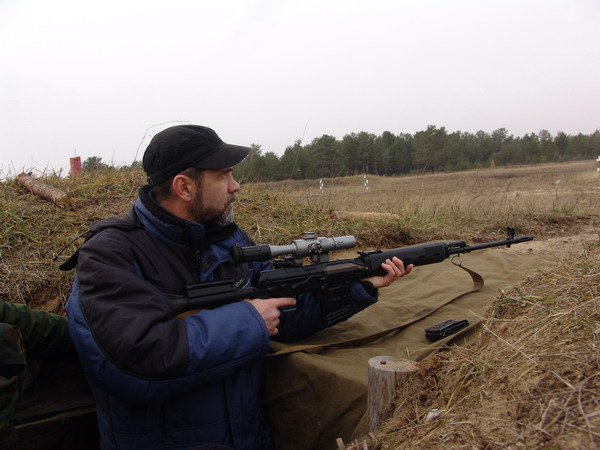 Командующий 20-й армией, генерал-майор Сергей Юдин стреляет из СВД