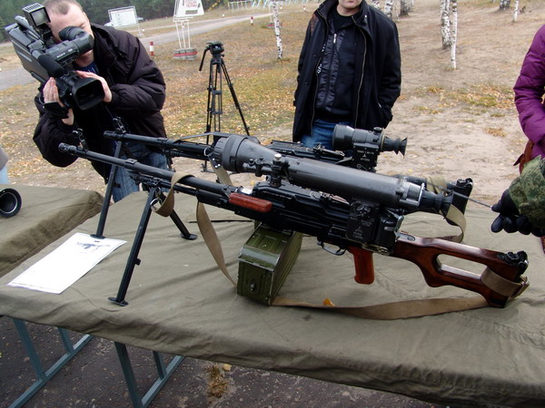 Сергей Астафьев (РИА Новости) с автоматическим пулеметом Калашникова