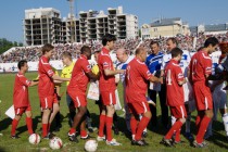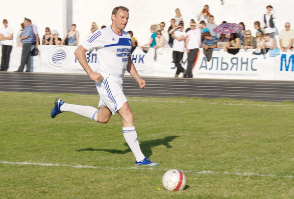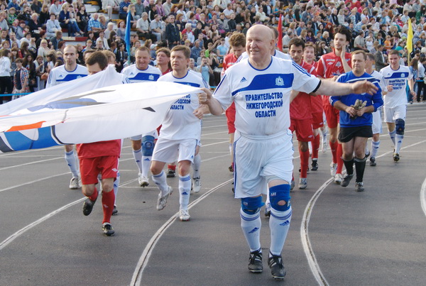 Сборная по футболу правительства Нижегородской области обыграла сборную команду звезд российской эстрады "Старко" со счетом 1:0 в г. Арзамас