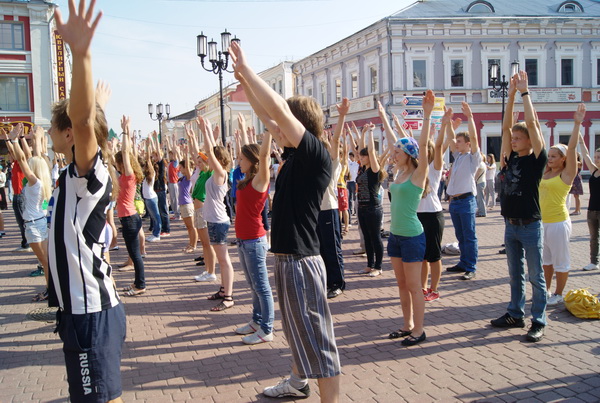 Первая общегородская студенческая зарядка состоялась в Нижнем Новгороде на Театральной площади