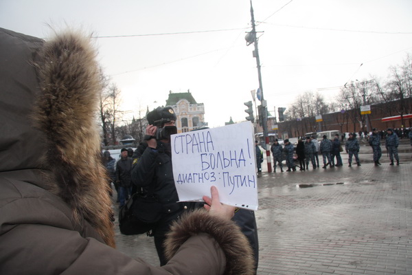 Участники несанкционированного митинга За честные выборы на площади Минина и Пожарского