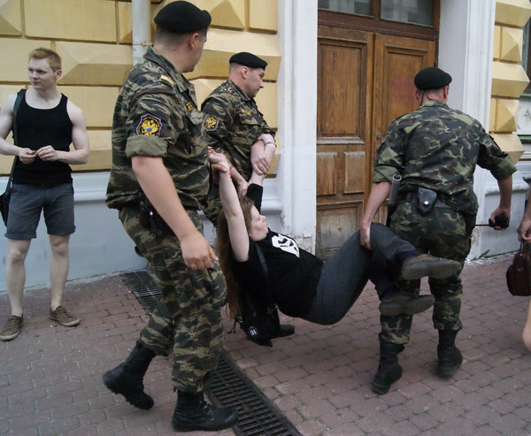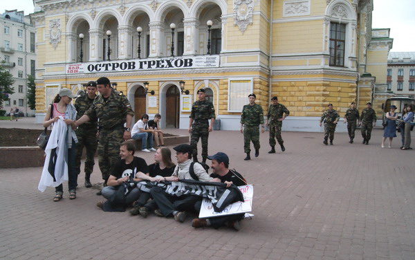 Полиция задержала участников несогласованного пикета, направленного против принятия закона "О митингах", который прошел на Театральной площади Нижнего Новгорода 8 июня