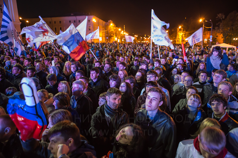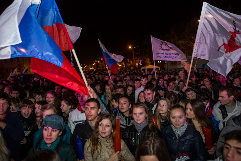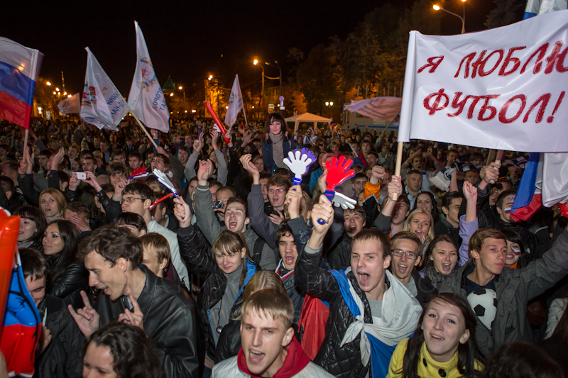 Сотни нижегородцев на площади Минина следили за церемонией объявления городов-организаторов чемпионата мира по футболу в России в 2018 году