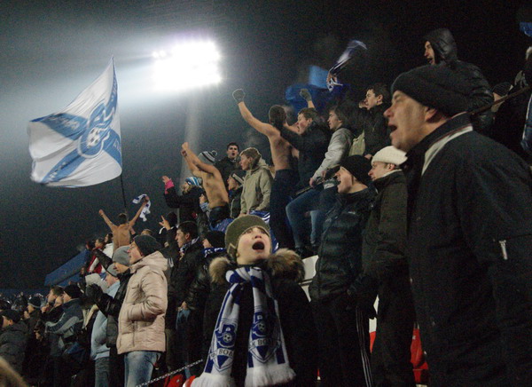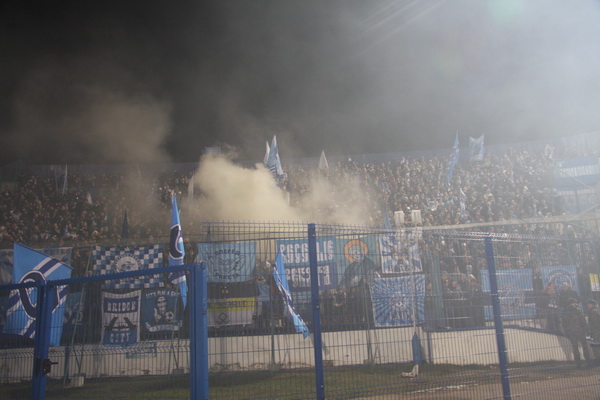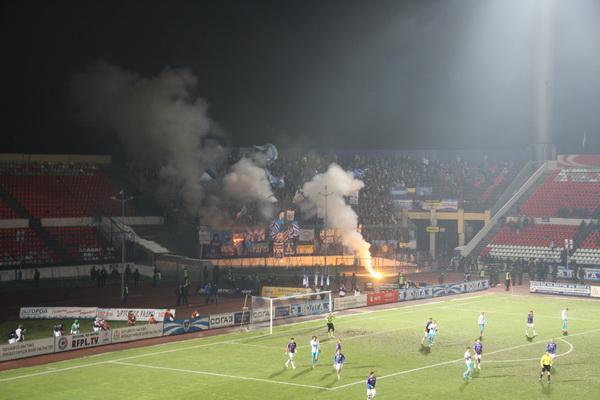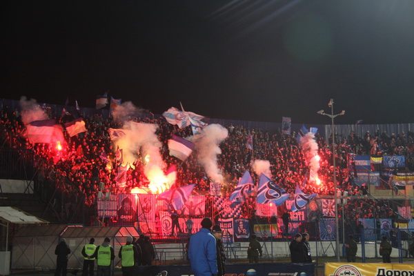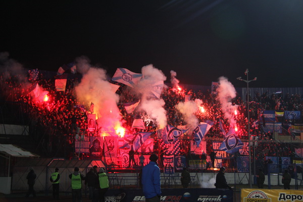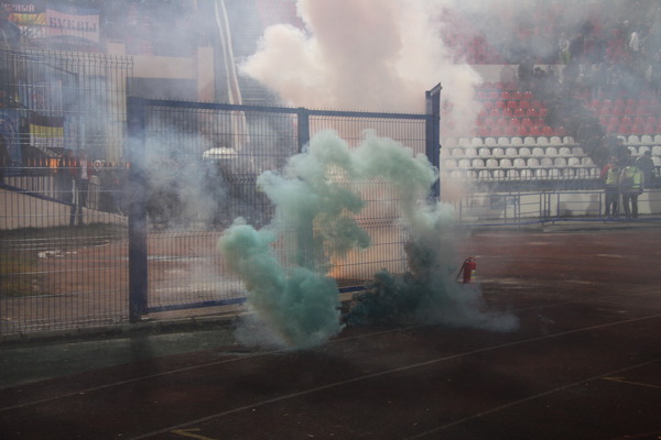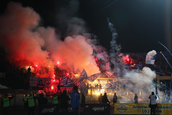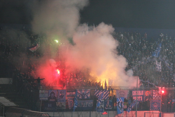 Фанаты Зенита жгут файеры на гостевой трибуне