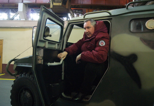 Дмитрий Рогозин (за рулем) въехал в цех АМЗ на Тигре